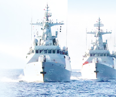 南部戰區海軍某基地護衞艦支隊組織艦艇編隊在某海域展開實戰化訓練。