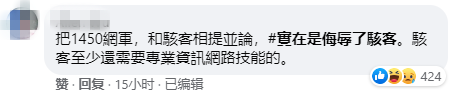 對此,有網友在《亞洲週刊》臉書下留言稱,“把1450網軍,和黑客相提並論,#實在是侮辱了黑客。黑客至少還需要專業資訊網絡技能的。”