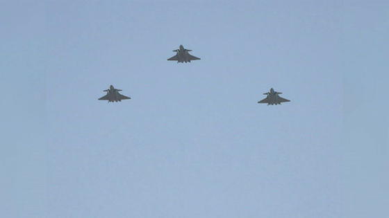 2017年7月30日,朱日和,在慶祝中國人民解放軍建軍90週年的閲兵式上,三架殲-20飛機米秒不差通過閲兵台上空,首次以戰鬥姿態展示在世人面前!