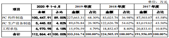 遠大住工的主要業務可以分為三個板塊:(1)PC構件製造業務,主要包括提供牆板、疊合樓板等PC構件設計、製造及相關服務;(2)PC 產設備製造業務,主要包括提供混凝土布料系統、養護系統、脱模系統等PC生產設備製造及相關服務;(3)工程承包業務,主要包括作為選定項目的工程承包商參與裝配式建築的建設。