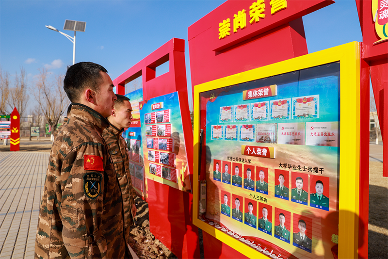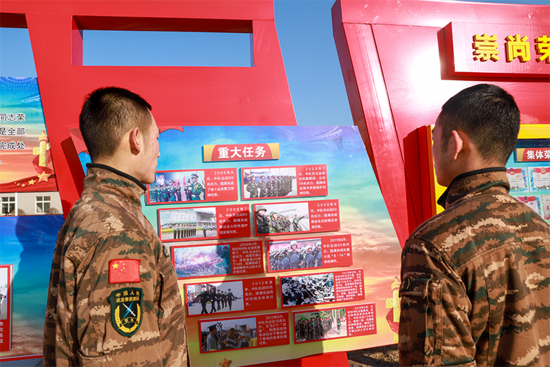 闖不過靈魂深處的激流險灘,就不能直面未來戰場的火海刀山,特戰中隊堅持文化鑄魂,在新隊員入隊後都會參觀榮譽室進行現地思想政治教育。這次,他們把中隊歷史沿革、參與的重大任務、收穫的各項榮譽、隊風、隊訓、隊魂都融入了文化牆,使中隊官兵進一步瞭解中隊自組建以來的輝煌歷程,增強集體榮譽感,凝聚“忠誠、團結、勇敢、頑強”的強軍力量。