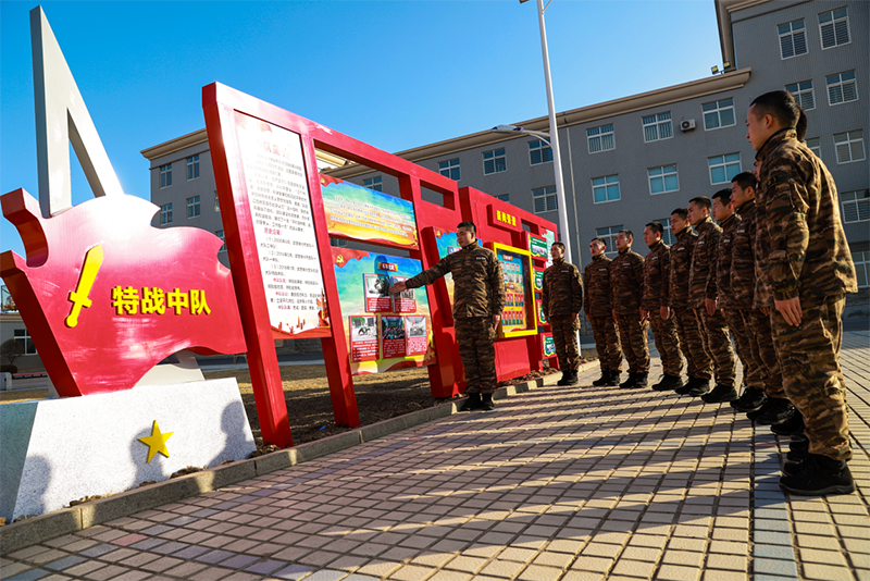 “跟我來!看我的!”,訓練場上特戰隊員們龍爭虎鬥,營區內文化牆展覽也如火如荼地進行。特戰中隊文化牆促進中隊官兵與特戰文化融為一體,在繼承中發展,在發展中傳承,讓“遼西地區反恐處突尖刀”的特戰文化品牌永續發光,接續發力。(作者:杜洋 張晨)