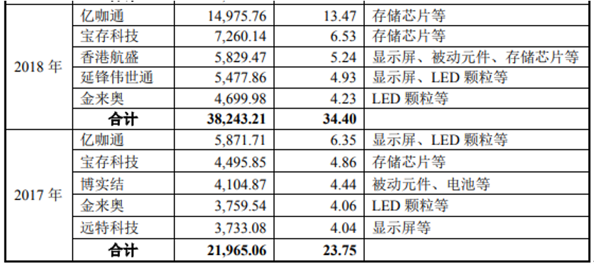 但與此同時,招股書第245頁則顯示,雅創電子在2017年向該客户銷售產品類型還是“顯示屏、LED 顆粒等”,從2018年之後才變更為“存儲芯片等”,這與招股書其他部分顯示的信息存在矛盾。