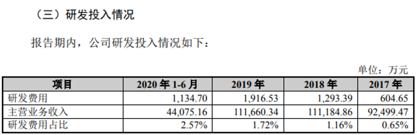 也即,公司的主營業務是代理銷售的貿易類業務,對於產品的技術含量要求並不高,這體現在公司的員工構成中,碩士以上學歷人員僅有7人、佔比僅為2.45%,同時公司各年度支出的研發費用佔比都較低,2020年上半年也僅為2.57%,2017年時更是低至0.65%。不僅如此,截止到目前,公司在雲計算開發、半導體設計等領域沒有任何專利儲備。