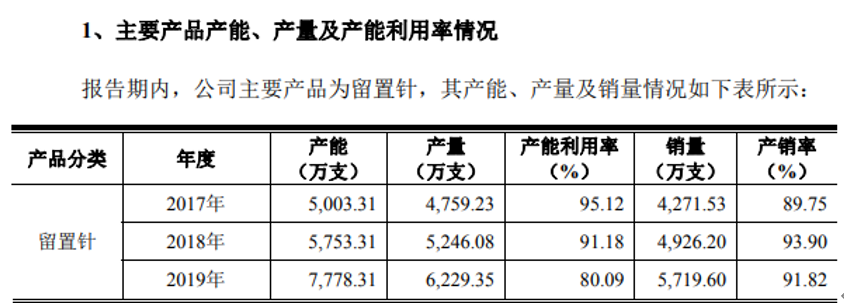 根據招股書披露的產銷數據顯示,在2017年到2019年,林華醫療各個年度的產品產量均超過了銷量,最近三年累計產量約為1.62萬支,同期銷量合計則約為1.49萬支,產銷差合計0.13萬支。這也就對應着,在2017年到2019年期間,林華醫療的留置針產成品庫存數量淨增加約為0.13萬支,大致相當於2019年銷量的22.73%;參照2019年林華醫療結轉的主營業務成本20735萬元計算,0.13萬支留置針的賬面價值約為4732萬元。