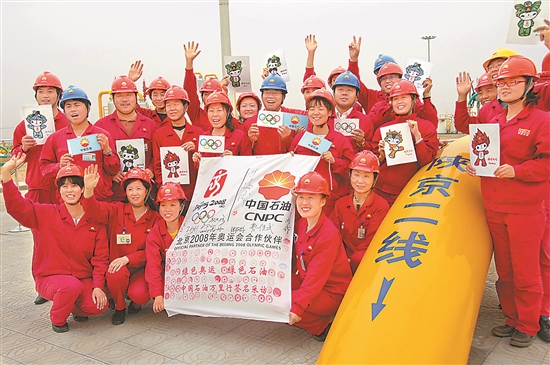 2007年5月23日,長慶榆林天然氣處理廠員工在陝京輸氣管道旁迎“奧運”。