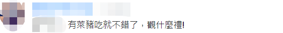 還有網友諷刺説,有萊豬(含瘦肉精美國豬肉)吃就不錯了,觀什麼禮? ↓
