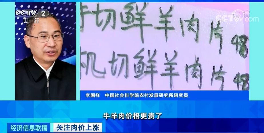 中國社會科學院農村發展研究所研究員 李國祥: 豬肉價格上漲之後,牛羊肉價格更貴了,牛羊肉熱量含量高,更適合禦寒,所以在更替的時候牛羊肉消費更加旺。