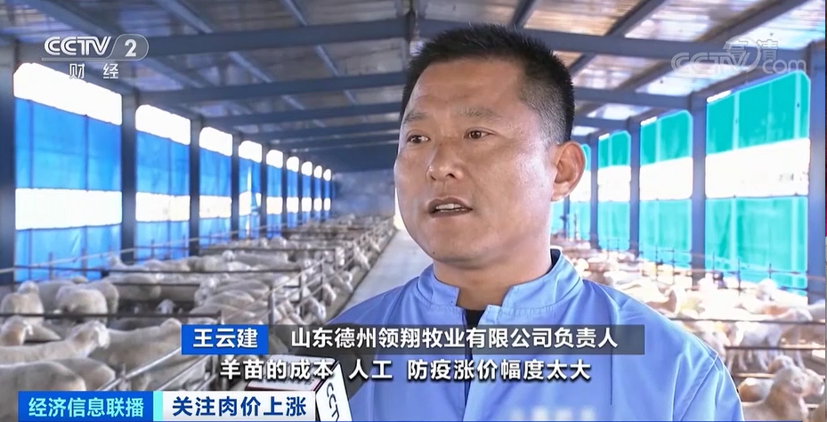 山東德州領翔牧業有限公司負責人 王雲建: 豆粕一噸漲了一千元,羊苗的成本苗、人工、防疫漲價幅度太大,成本太高,造成現在羊利潤很小。