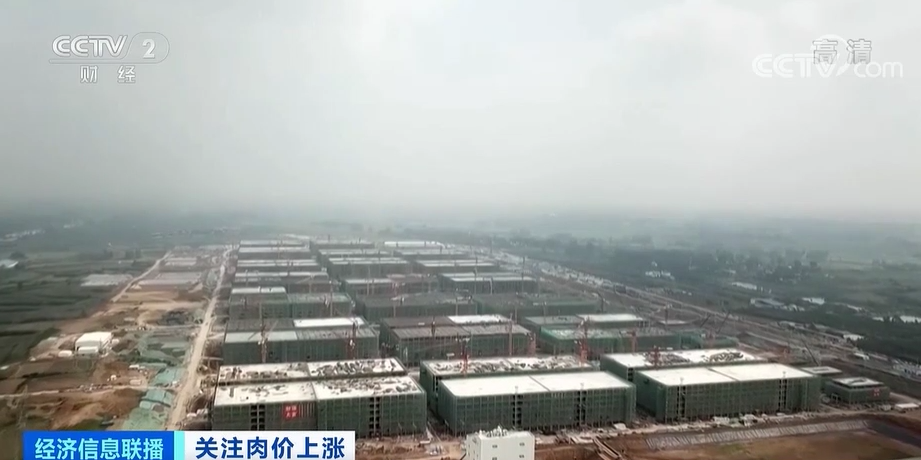 在河南省內鄉縣的2800畝肉食產業綜合體項目工地上,工人正在忙碌作業,預計到2021年,這裏將建成年加工飼料72萬噸,出欄、屠宰、加工生豬肉食210萬頭的綜合體。