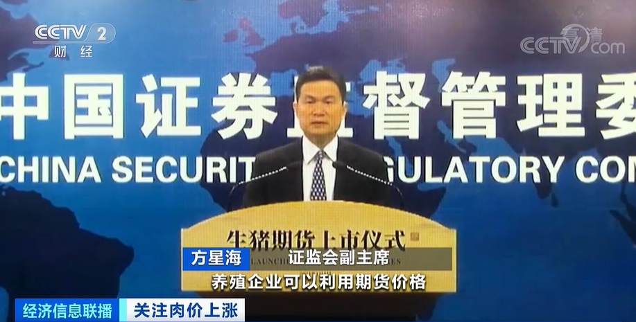 證監會副主席 方星海: 養殖企業可以利用期貨價格安排生產計劃,並利用期貨市場對沖現貨風險,進而推動生豬產業實現“穩價”“保供”,壓減“豬週期”波幅,促進產業平穩有序發展。