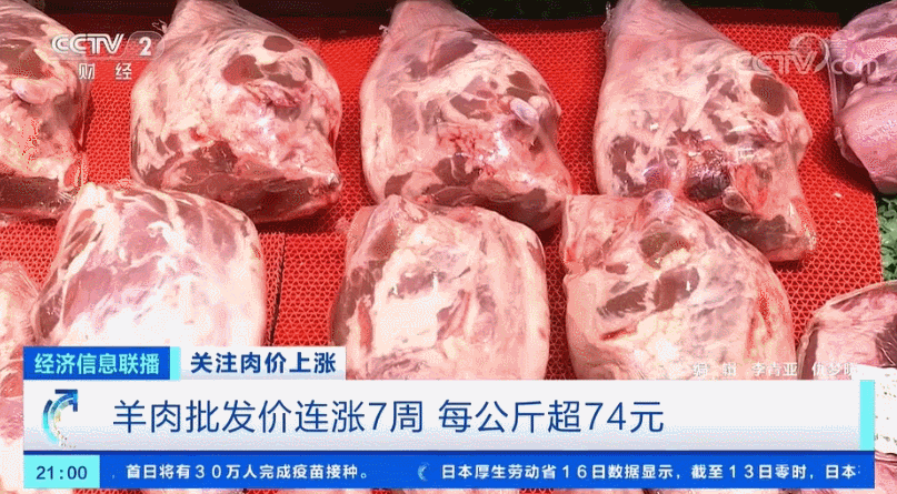 數據顯示,截至2021年第1周,羊肉批發價已連續7週上漲,從2020年第47周的69.22元/公斤漲到2021年第1周的74.87元/公斤,漲幅8.16% 。