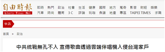 報道稱,仔細看,大陸愛國歌曲MV裏還出現五星紅旗、解放軍展示軍力畫面,台灣藝人歐陽娜娜此前所唱的《我的祖國》,以及《歌唱祖國》《祖國萬歲》《延邊人民熱愛毛主席》《我愛你中國》《沒有共產黨就沒有新中國》等都在歌單裏。“民視新聞網”由此聲稱“雲端伴唱機染紅”。