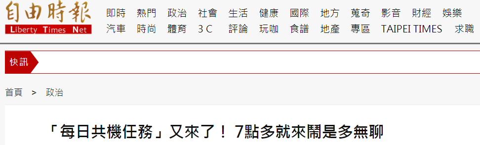 綠媒炒作:解放軍軍機又進入台西南空域,7點多就來了
