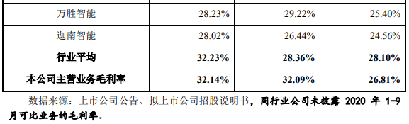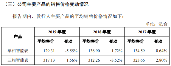 而與此同時,招股書第311頁顯示,煜邦電力的智能電錶產品售價在2018年還出現了明顯下滑,其中單相表售價從2017年的157.95元下降到2018年的125.82元、降幅高達近20%,三相表售價也從358.81元下降到329.04元。單從同行業可比公司來看,卻並未出現如此大幅的售價下降,以萬勝智能為例,該公司的單相智能表售價在2018年還小幅提升。一方面是產品售價大幅下滑,另一方面卻能夠實現毛利率的顯著提升並超越同行業其他公司,這同樣是值得關注的。
