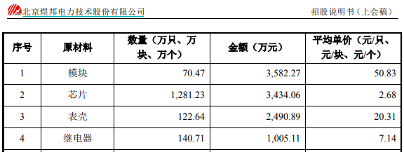再來看煜邦電力的經營數據,招股書披露的原材料採購數據顯示,2018年煜邦電力的核心原材料芯片的採購單價僅為2.68元;而同年,萬勝智能CPU採購單價則高達4元以上,該公司所使用的ESAM 芯片採購單價更是高達12元左右。這也意味着萬勝智能的電錶產品功能和應用場景,相比煜邦電力的電錶產品更為先進。但在此背景下,煜邦電力的單相表、三相表產品售價竟然還能夠明顯高於萬勝智能。