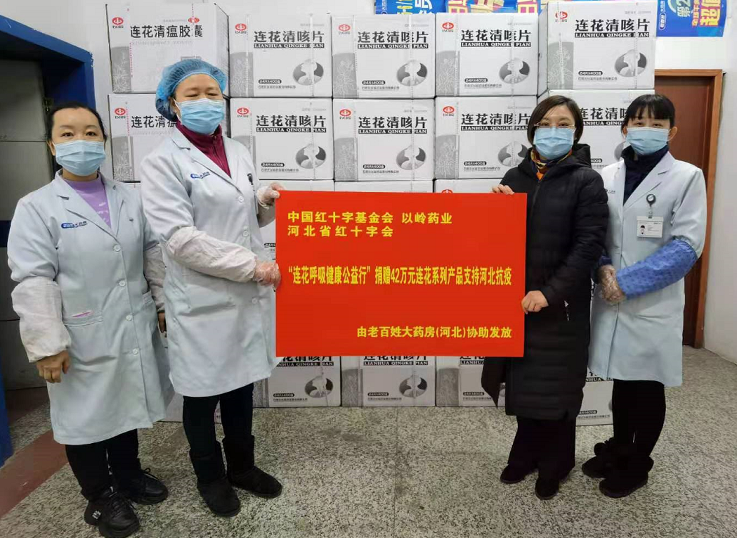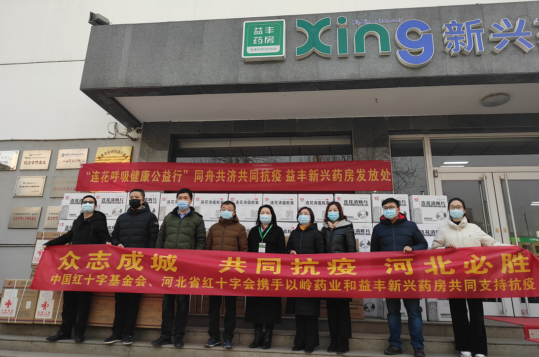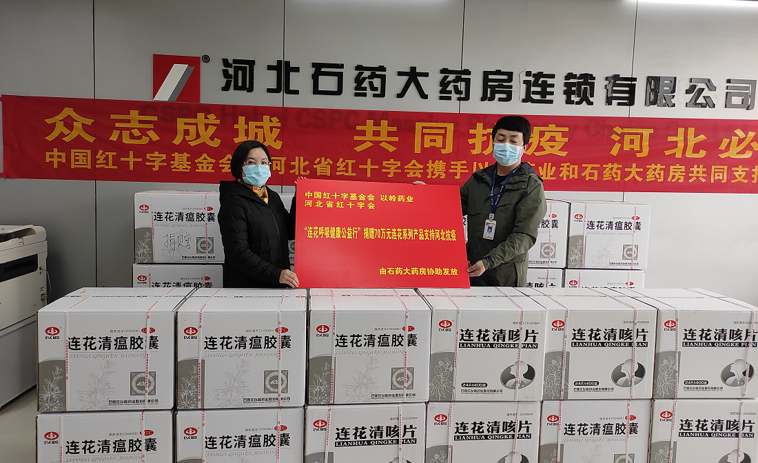 “連花呼吸健康公益行”項目由以嶺藥業投入5000萬元款物,聯合中國紅十字基金會共同發起,其中1000萬物資用於定向支持河北疫情防控。此次捐贈河北的物資包括連花清瘟膠囊、連花清咳片以及連花清體噴霧、連花免洗抑菌洗手液、連花清膚衞生濕巾在內的連花呼吸健康系列產品。目前,捐贈物資已運送到益豐新興大藥房、神威大藥房、國藥河北樂仁堂、石藥大藥房、老百姓大藥房(河北)、邢台天宇大藥房的發放處和部分醫療機構。