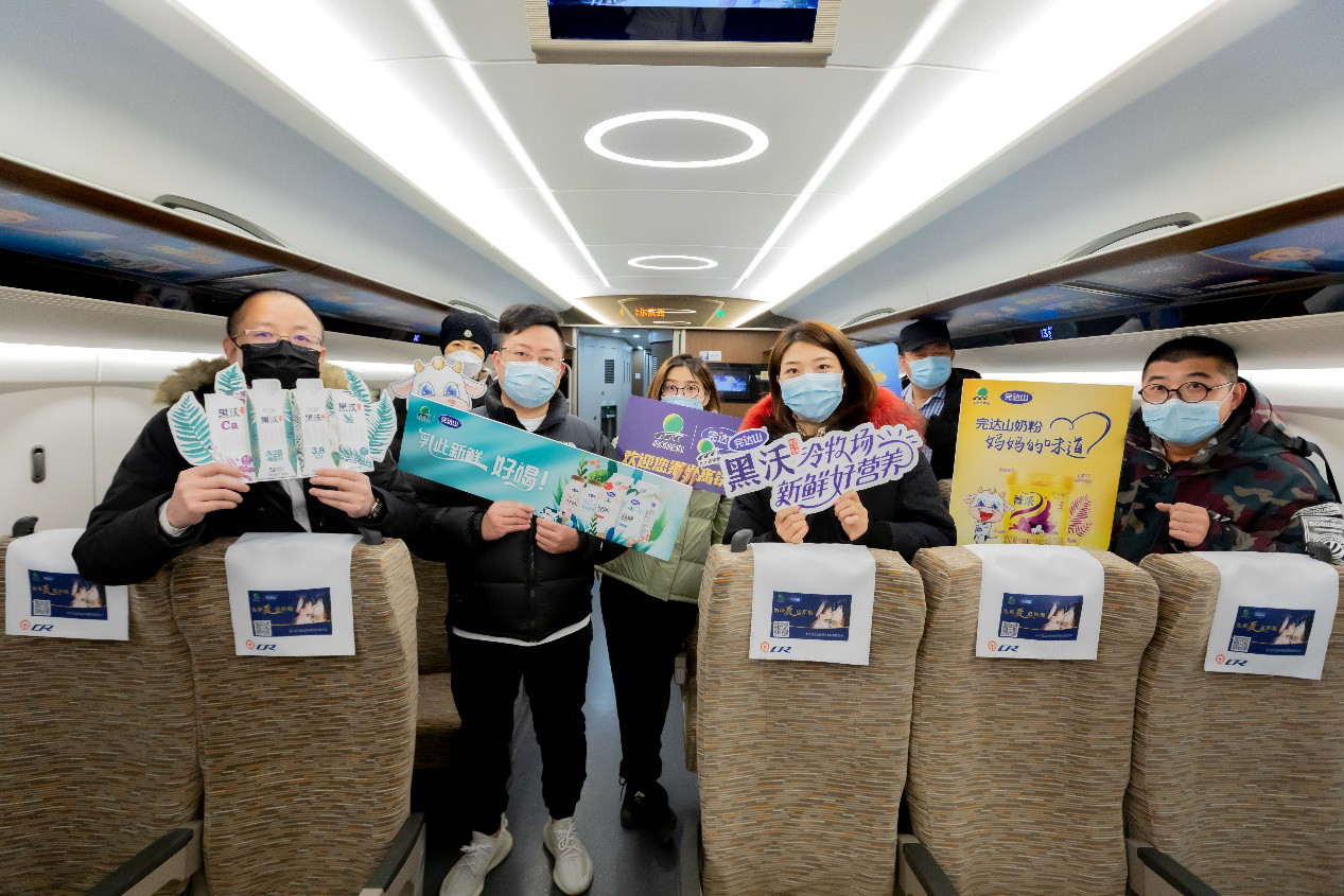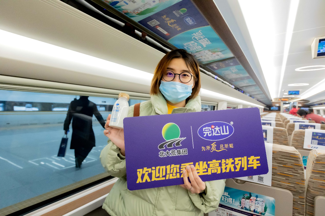 2021年1月22日10點20分,隨着北京朝陽站正式開始運營,G915次復興號緩緩駛出,由北大荒完達山乳業股份有限公司冠名的京哈復興號高鐵正式首發。高鐵列車一路向北,縱穿河北與東北三省,將完達山“為所愛,盡所能”的品牌理念與產品帶到千家萬户,向消費者傳遞完達山用心守護從牧場到餐桌每一步的品質初心,也標誌着完達山正以“中國速度”開啓全新的品牌發展征程。此次冠名京哈復興號高鐵,完達山注重以產品為核心元素,根據不同產品特點,打造定製化產品主題高鐵車廂,構建品牌與產品場景化,以傳遞品牌價值與產品信息,從而實現品牌曝光與產品引流的雙重突破。
