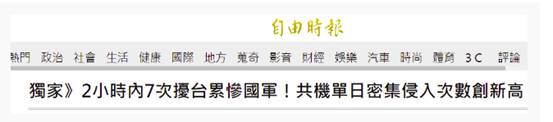 在台防務部門發佈“共軍”今日進入台西南空域活動情況之前,島內綠媒《自由時報》稍早前聲稱,今天“共機”極罕見在短短2小時內“侵入”台西南空域達7次,台灣各地空軍基地也出現密集起飛狀況。報道還在標題中吐槽稱“共機”“2小時內7次擾台累慘國軍”。
