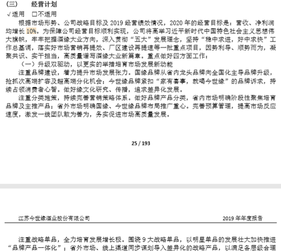 時至如今,在2021年1月13日盤後今世緣在提交的《江蘇今世緣酒業股份有限公司五年戰略規劃綱要(2021—2025)》公告中稱,“到2025年,公司努力實現營收過百億(爭取150億元)。為開好局、起好步,2021年營收目標59億元左右,爭取66億元。”