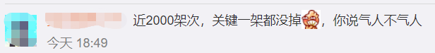 還有大陸網友諷刺説,“近2000架次,關鍵是一架都沒掉,你説氣人不氣人。”↓