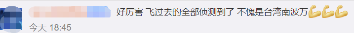消息傳到大陸,也有大陸網友諷刺蔡英文稱,“好厲害,飛過去的全部偵測到了,不愧是台灣南波萬。”↓