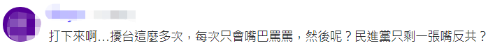 有網友嘲諷民進黨當局:“打下來啊……擾台這麼多次,每次只會嘴巴罵罵,然後呢?民進黨只剩一張嘴反共?”↓