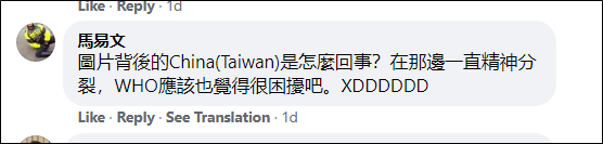 有台灣網民就表示,連抗議此事的發言人背後都寫的“中國(台灣)”,顯得很精神分裂,世衞組織肯定也會覺得很納悶。