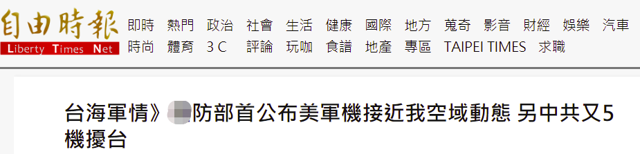 綠媒:台防務部門首度證實1架美軍機在台外圍空域活動,“共機”5架