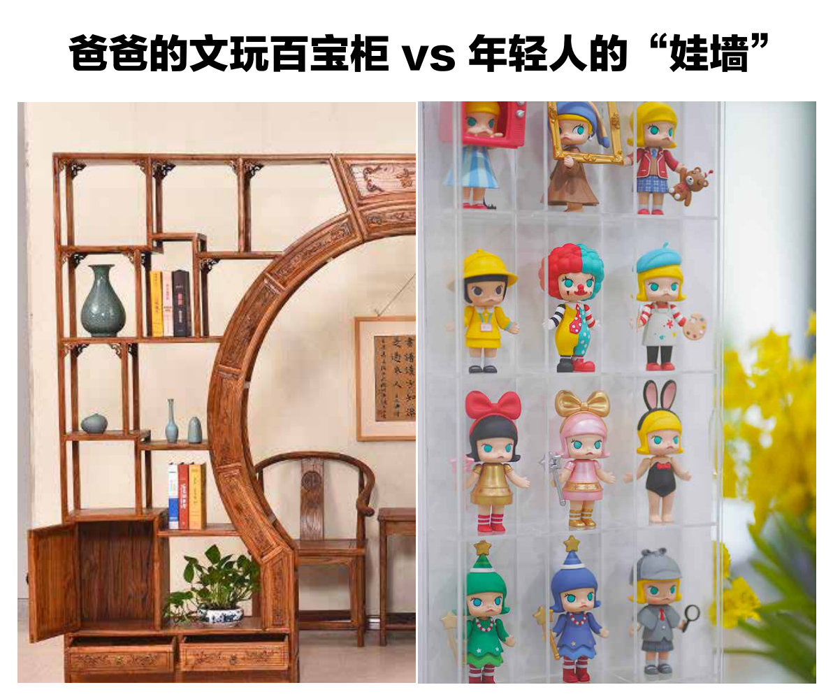 這一代人通過收集潮玩,再為它們搭配上展示的住所,來完成對自我的表達和安撫,就像父輩們給心愛之物“安家”、實現對審美的珍視一樣。不同的介質承載着不同的收藏品,相同的是對精神的追求。從百寶櫃到展示盒,其中收藏的都是一代人的文化印記。