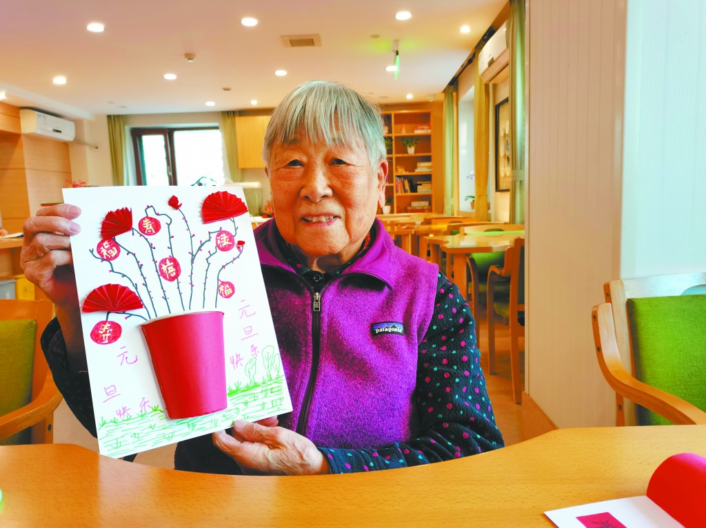 “我以前是學幼兒教育專業的。現在在養老院的生活感覺就和幼兒園大班差不多。”93歲的鄭奶奶口齒清晰,看上去比實際年齡年輕很多。她告訴《環球時報》記者,自己2017年入住北京首開寸草亞運村養老院,這裏每天會組織兩次集體活動。早上9點到10點,先做回春操,然後做“開火車”等遊戲。下午3點到4點,可以畫畫、唱歌、捏泥、打乒乓球。鄭奶奶最喜歡玩“數字油畫”,畫了好幾幅。“這裏玩的遊戲跟幼兒園小朋友差不多,大家在一起説説笑笑,比家裏熱鬧”。