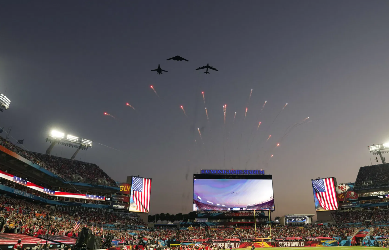 這些轟炸機型號的數字之和正好是55(1+2+52),這也與第55屆“超級碗”比賽相呼應。這些轟炸機從各自的基地起飛,在空中集結並組成編隊,隨後飛越了雷蒙德·詹姆斯體育場上空。美國空軍表示,這次行動“證明了美國空軍全球戰略打擊司令部下屬的轟炸機的靈活性,以及它們能夠從美國本土前往世界任何地方進行部署的能力”。