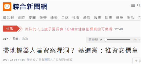 【環球網報道 記者 尹豔輝】據台灣親綠媒體《自由時報》等多家台媒2月9日報道,鼓吹“台獨”的“台灣基進黨”今天(9日)上午與旅日物聯網工程師SAM等人舉行記者會,宣稱一款在台灣可買得到的大陸品牌掃地機器人,使用特定的APP遙控,會定期傳輸資料回大陸,“台灣基進立委”陳柏惟還聲稱,台灣民眾使用這款掃地機器人,家裏房間的資訊、使用手機下載APP時手機的資料也都會被大陸竊取、監控。針對這些説法,有島內網友諷刺稱,大陸監控地板有沒有吸乾淨、有多少灰塵?也有人批評稱,“台灣遲早被這羣垃圾害死!”