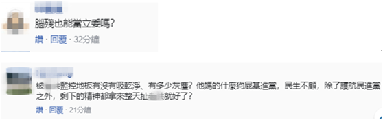 也有網友提出質疑,被大陸監控地板有沒有吸乾淨、有多少灰塵?什麼狗屁“基進黨”,民生不顧,除了護航民進黨之外,剩下的精神都拿來整天扯大陸就好了?
