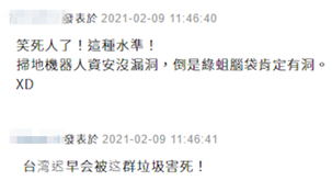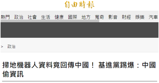 台灣基進黨宣稱用大陸掃地機器人會被竊取資料,網友批:台灣遲早被這羣垃圾害死!