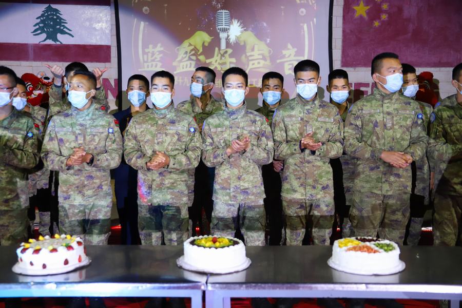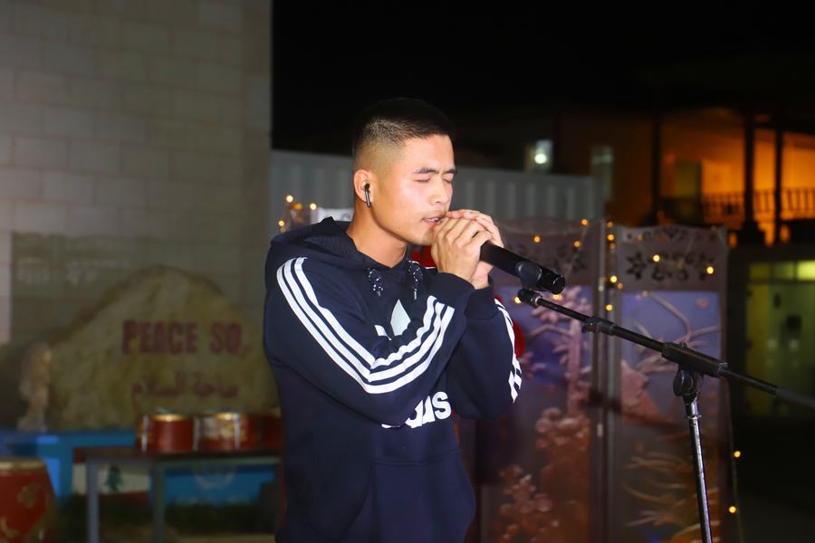 【環球網報道 特約記者 劉雄馬 黃禮明】“曾夢想仗劍走天涯,看一看世界的繁華,年少的心總有些輕狂……”春節前夕,當人們沉浸在春節即將到來的喜慶氣氛中時,位於地中海畔的第19批赴黎維和建築工兵分隊營區裏同樣張燈結綵,喜氣洋洋,傳來陣陣動聽歌聲,全體維和官兵歡聚一堂舉辦“藍盔好聲音”暨春節晚會。