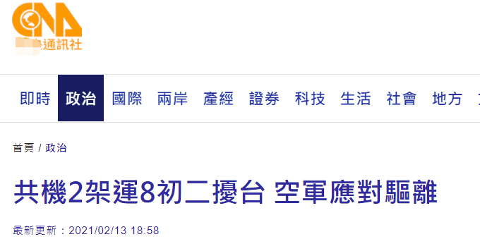 《自由時報》援引“台灣西南空域”粉絲專頁記錄,稱“共機”本月累計進入台空域10天,本月“廣播驅離”紀錄共計18次,農曆春節期間僅初一未記錄到“共機”進入台西南空域。