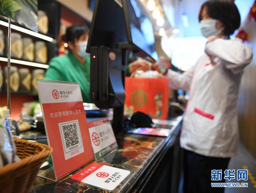 王府井大街的一家商店內可使用數字人民幣支付(2月12日攝)。新華社記者 張晨霖 攝
