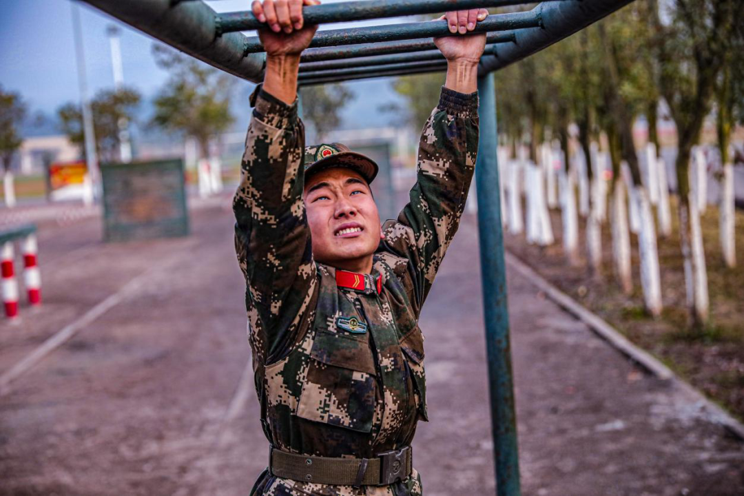 下連之後,他成為戰友公認的“拼命三郎”。單槓拉不上去,就纏上灌滿水的水壺,日復一日地“卷繩子”;跑步跑不快,就圍着支隊營區跑了一圈又一圈;射擊打不準,就牢牢把槍據穩,汗水滴到眼睛裏仍死盯住靶紙。