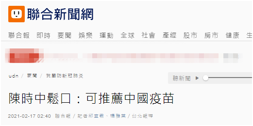 陳時中14日還宣稱,大陸疫苗不是我們的候選疫苗,“主要是一些相關技術性資料並不完備,科學性資料也沒有發表過”。這一説法很快被國民黨人士推翻。