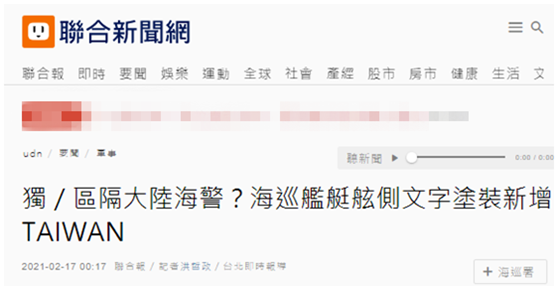 【環球網報道 記者 尹豔輝】據台灣《聯合報》2月17日報道,前不久在台“國安”高層指示下,台“海岸巡防署”以避免與大陸海警船混淆為由,下令改變海巡艦艇舷側現有文字塗裝,在現有“R.O.C COAST GUARD”上方,增加醒目的“TAIWAN”塗裝,現已完成新北艦、澎湖艦等數艦新制塗裝,未來百餘艘大小艦艇,將利用歲修(每年進行的有計劃的整修和養護工作)時機,全數“正名”。國民黨“立委”陳以信對此表示,“希望此舉沒有意識形態的考量”。台灣政策研究基金會高級助理研究員揭仲質疑,“海巡署多此一舉”。
