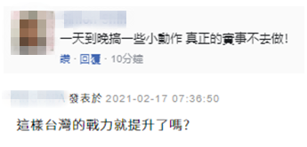 針對此事,有島內網友表示,“一天到晚搞一些小動作,真正的實事不去做!”“這樣台灣的戰力就提升了嗎?”