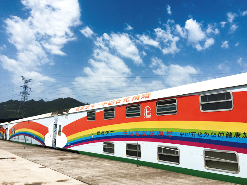 中央企業把健康扶貧放在重要位置,努力解決貧困地區“看病難”、“看病遠”等突出困難。2004年以來,中國石化連續16年開展“中國石化光明號”健康快車公益項目,使4.6萬名貧困白內障患者重見光明。圖為2015年5月13日,“中國石化光明號”健康快車在湖北省恩施土家族苗族自治州開展公益活動。 中國石化供圖 王志東/攝