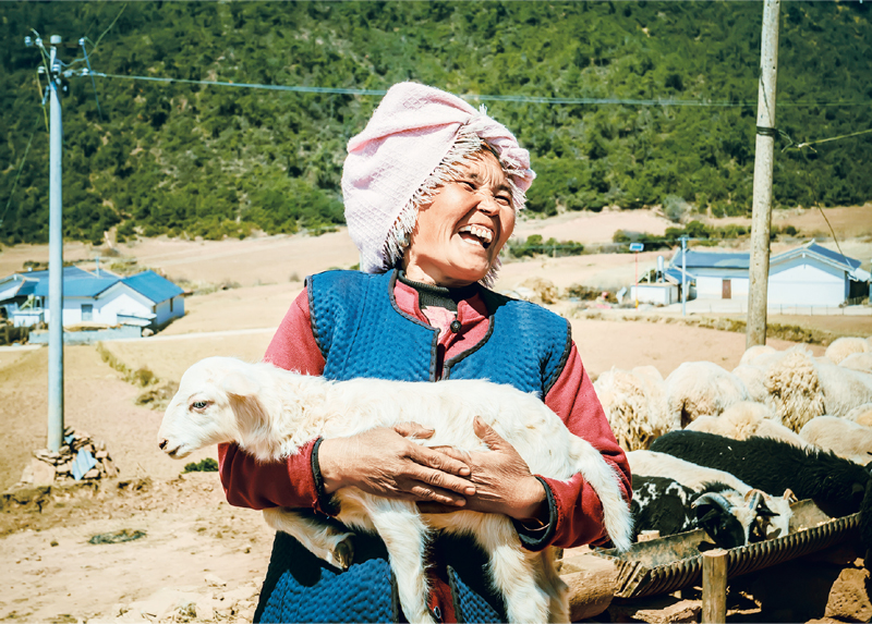 發展產業是實現脱貧的根本之策。通過產業扶持,中國華能四川公司對口幫扶的涼山州昭覺縣團結村脱掉了貧困村的帽子。圖為2020年3月30日,該村一貧困户在“借羊還羊”項目獲得豐收後喜笑顏開。 中國華能四川公司供圖 何松/攝
