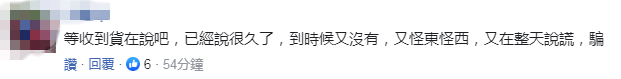 針對陳時中的説法,有些島內網友並不買賬,在網上留言表示,“又不知道拿什麼去換了…”“等收到貨再説吧,已經説很久了,到時候又沒有,又怪東怪西,又在整天説謊,騙。”
