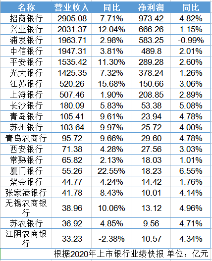 20家上市銀行發業績快報,僅1家淨利潤下滑