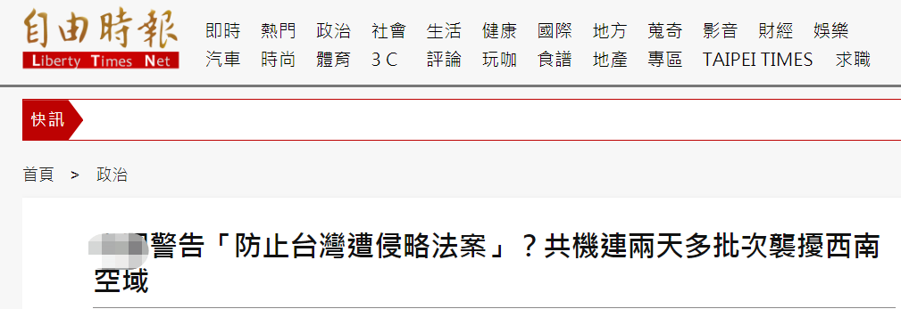 綠媒吐槽:“共機”今天11分鐘內4度進入台西南空域