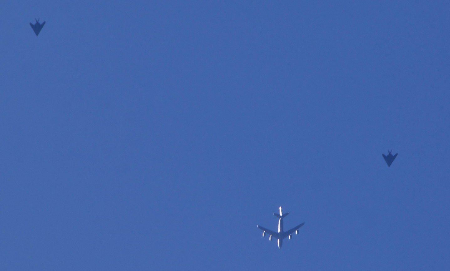“在洛杉磯機場上空,兩架F-117隱形戰鬥機和一架KC-135R加油機同時飛過……我這輩子都從沒見過這樣令人驚歎的場面,”哈特曼21日在推特上説。