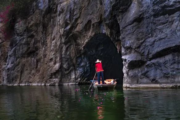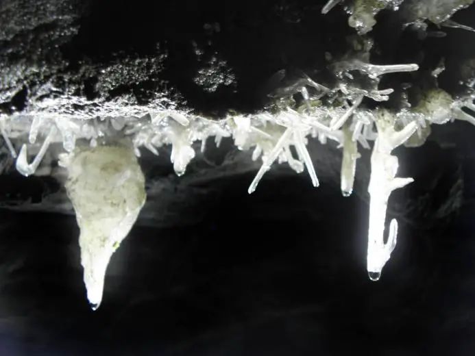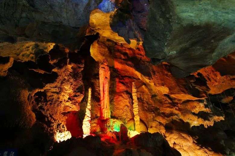 旱洞已開發650米,內有石鐘乳、石筍、石柱、石旗、石瀑布、石舌、輝銻礦晶簇、水晶石晶簇等,尤其是洞內發育生長的“一石二花”捲曲石、文石花、方解石晶簇堪稱國之瑰寶和世界一絕,需要我們重點保護。水洞已開發350米,水最深處18米。曲折蜿蜒的地下河水光怪陸離,五彩斑斕,輕舟漫遊,宛若遨遊龍宮,讓人遐想萬千。