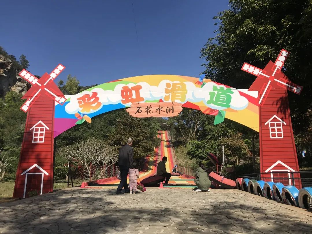 本景區由地上石林景點、地下溶洞與地下河景點和熱帶水果園景點組成。石花水洞不是一個普通的山洞,溶洞形成於4億年前,洞內景觀形成於140萬年前,歷經地球洪荒演變,造就了獨特的溶洞奇觀。洞內景區由旱洞和水洞兩部分組成,洞道系統複雜,總長約5000米,其中旱洞長約2000米,已開發650米;水洞長約3000米,已開發350米。洞內次生化學沉積物發育。石花水洞地質公園被譽為“南國奇洞”和“神奇的地下藝術宮殿”。